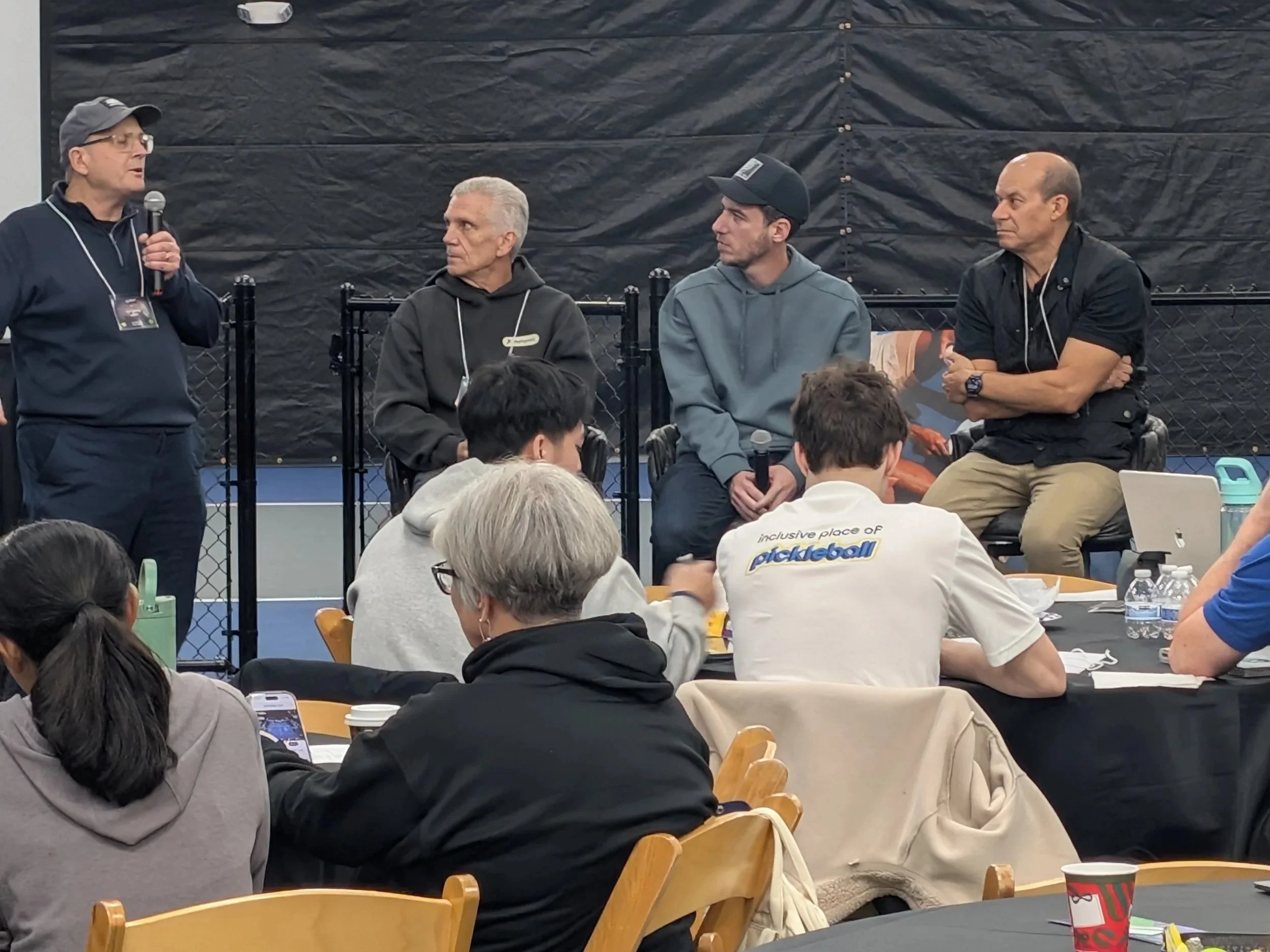 From left to right: Josh Kerns (IAPPF), Tom Konkowski (Conquer Padel), Pablo Arcuschin (Pacific Padel), Andres Snaider (PadelPista).